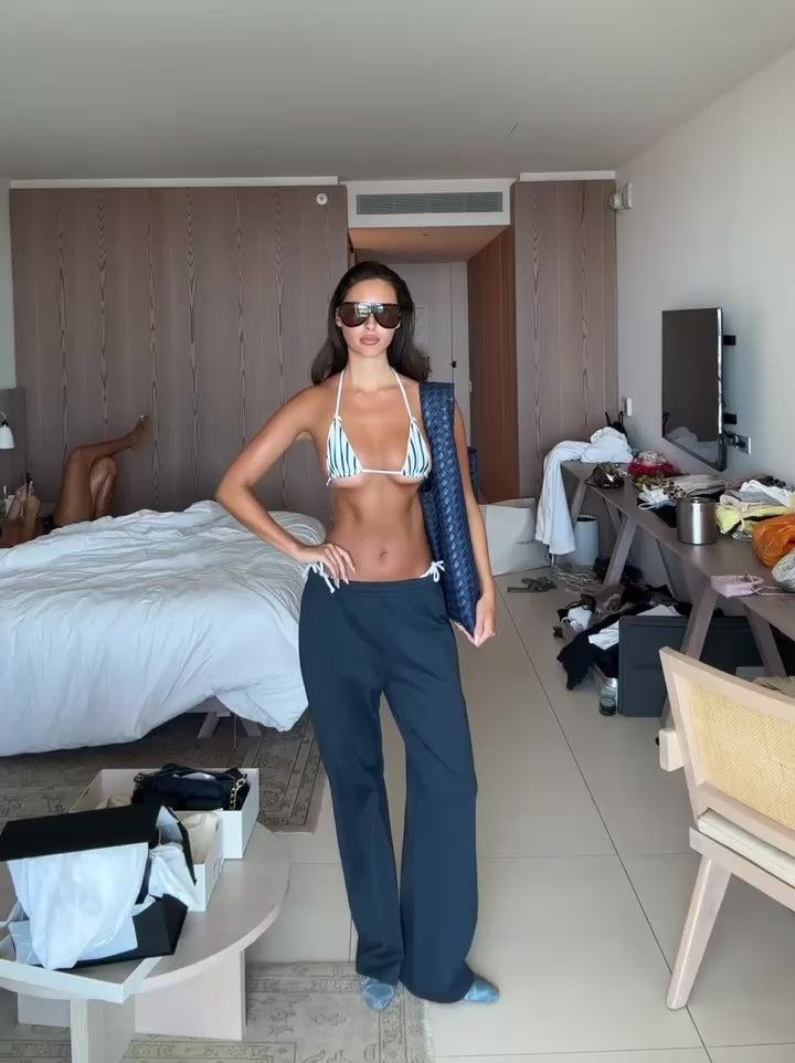 The Riviera Bottoms are made for cheeky coverage lovers, who want a flattering, leg-lengthening fit. Featuring adjustable tie sides for a flattering, high-hip fit that sculpts the silhouette. Finished with our exclusive Riviera stripe, a playful white bow, and signature gold hardware for a touch of nostalgic coastal charm.